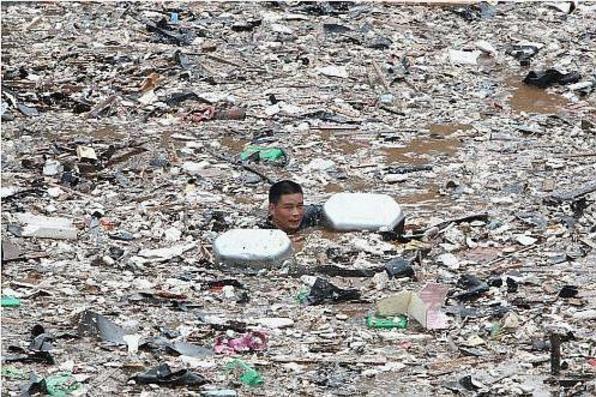 まるで緑茶のように見えるが、これはアオコ、中国語で水華と呼んでいる。石子峰ダムにアオコが発生し、鎮政府は8/7に水道水を飲まないように告知した。同地区の水はクラス2であり、飲料水基準としては上(クラス3までが飲料水基準、クラス4は工業用水)なのだが、異常な臭いと緑色に染まっている。